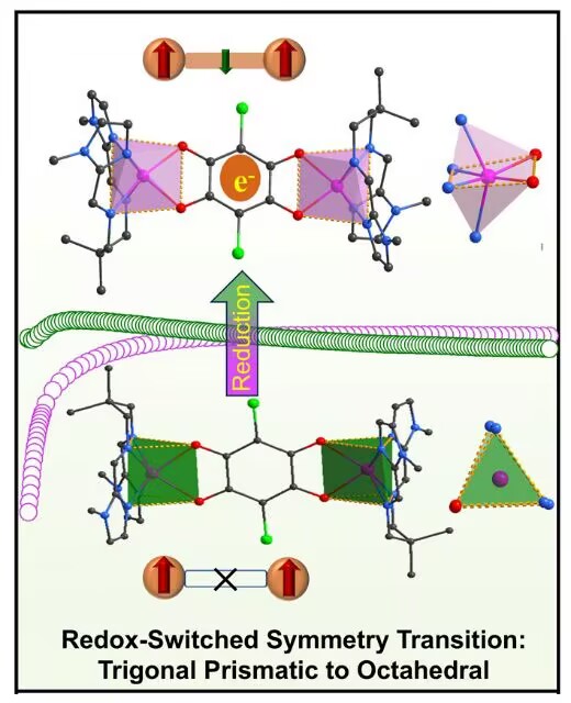 苯醌桥双核Co(II)单分子磁体氧化还原实现三棱柱到八面体对称性转变