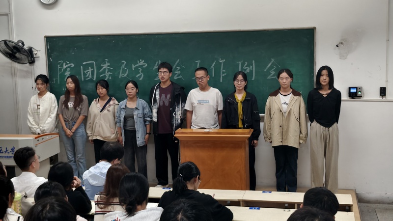 我集团团学组织欢迎2025级见习干事的加入,各位见习干事上台依次做自我介绍并表达了对院团委、学生会工作的期待。