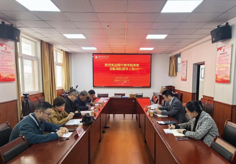 检查组组长王卫东教授强调了期中教学检查的重要性,随后与检查组成员叶良明教授、曹晓琴教授、邓小明老师、居思危老师,结合学院自查材料,对师范专业认证维持、审核评估整改落地、2025年春季学期期末试卷规范性、2025届本科毕业论文质量、学业帮扶精准度、新增教材适用性、教研室活动实效性、语言文字工作落实等方面进行了细致核查。